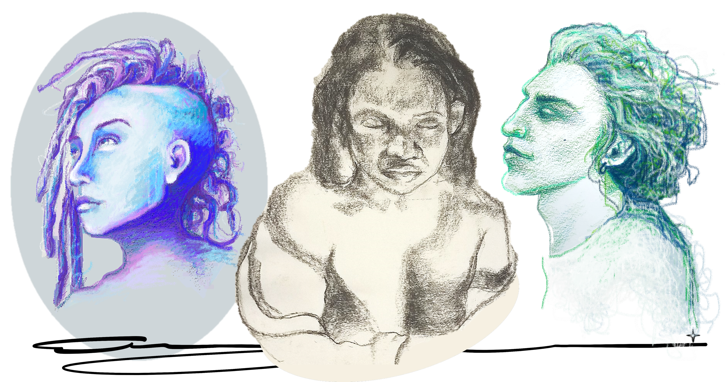 Portraiture Charcoal & Pencil Drawings "Somewhere between still lifes and color theory while at BlackHawk College, I realized my true love was portraiture and life drawing — messy charcoal hands and all."