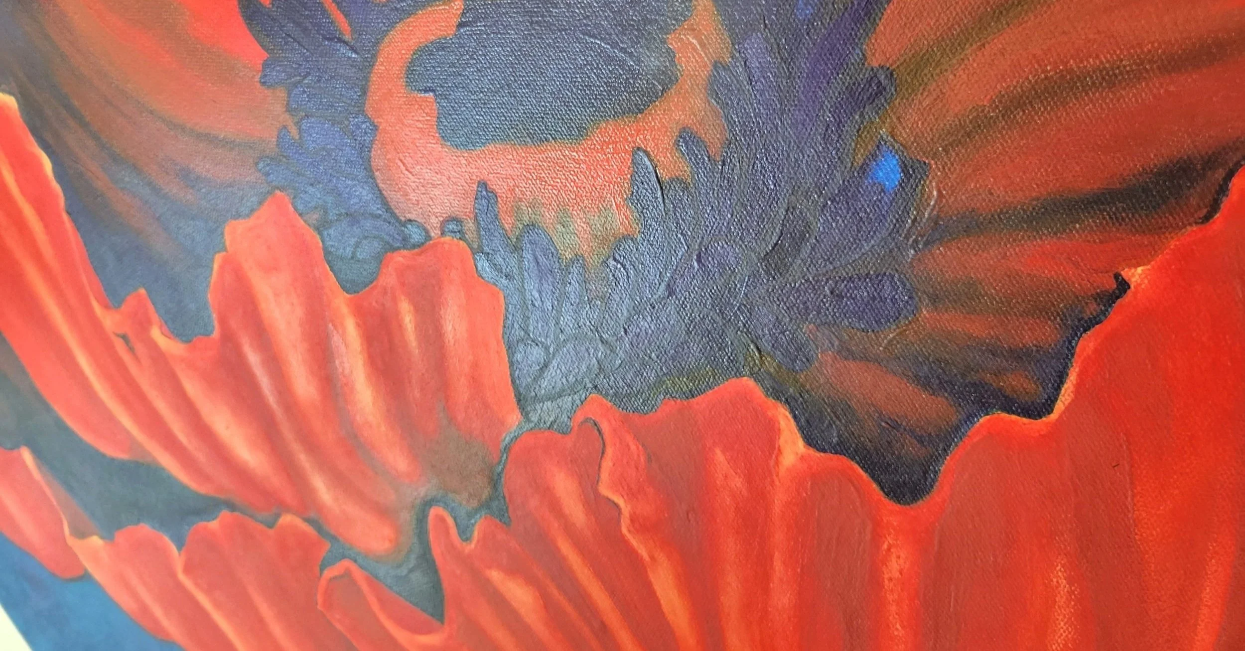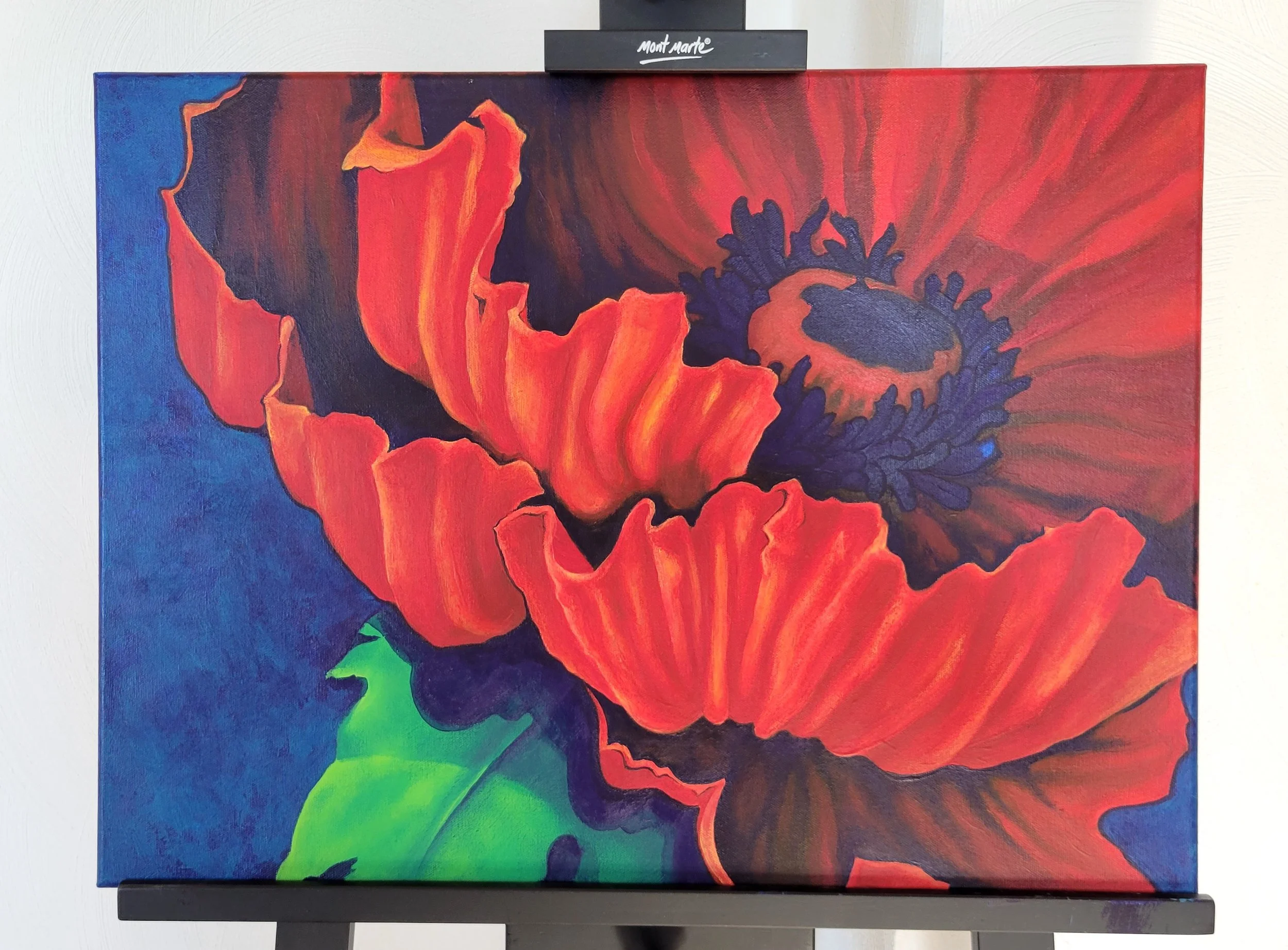 Pretentious Poppy An exploration of color theory and composition - how complementary & tertiary colors can be utilized to create a sense of light and dark without the use of black and white. Floral Series (2023 - 2025)